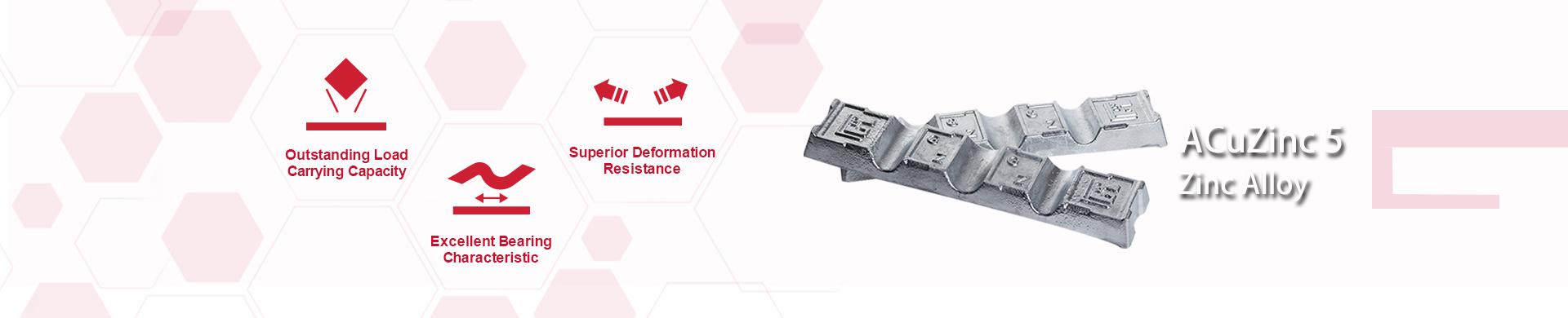 ACuZinc 5 zinc alloy is also known as zinc-copper-aluminium alloy. Its high copper yet low aluminium composition gives ACuZinc5 better tensile strength, hardness, wear and deformation resistance. It also has outstanding load carrying capacity and bearing characteristics.